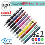 4色ボールペン+シャープペンの0.5mm。超・低摩擦ジェットストリームシリーズのボールペンはくっきりと濃い描線・優れた速乾性・インクの直流&逆流を防止。